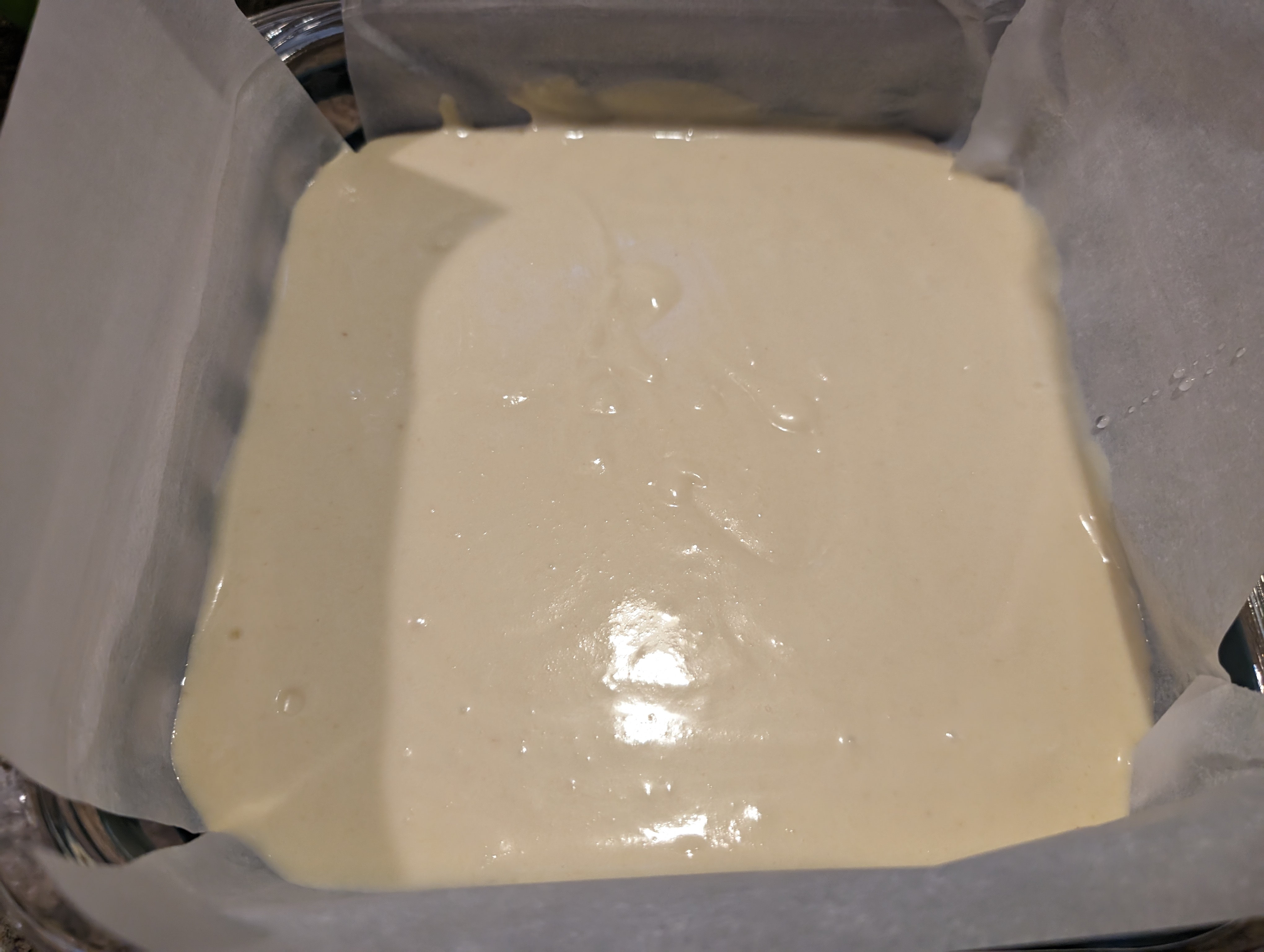 종이 포일을 깔아 둔 팬 위에 반죽을 부은 뒤에,